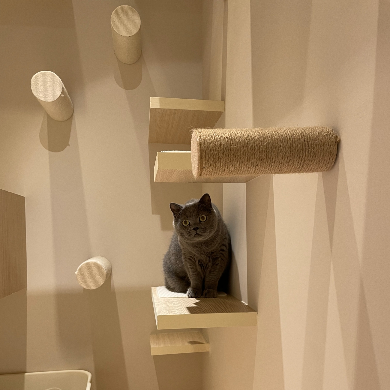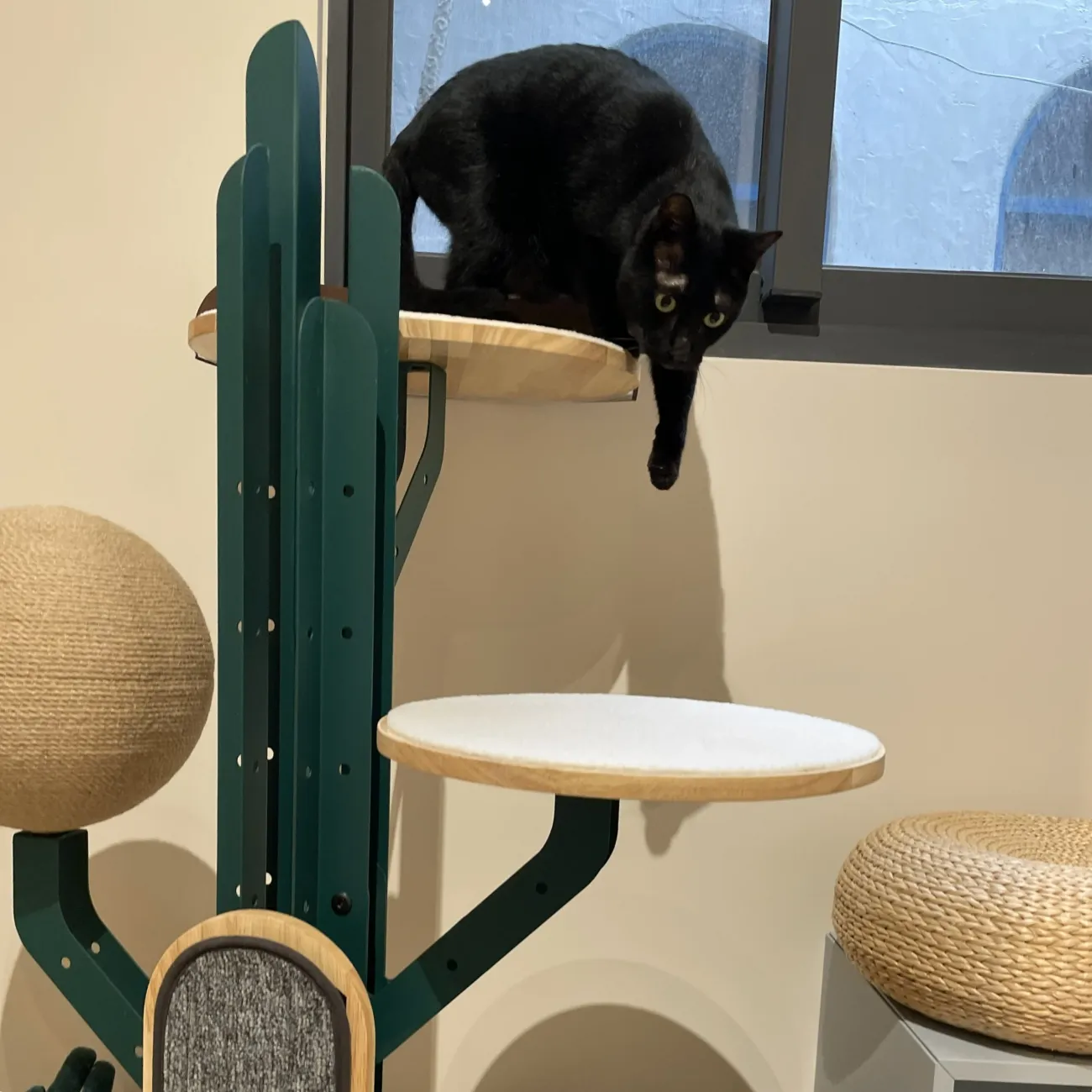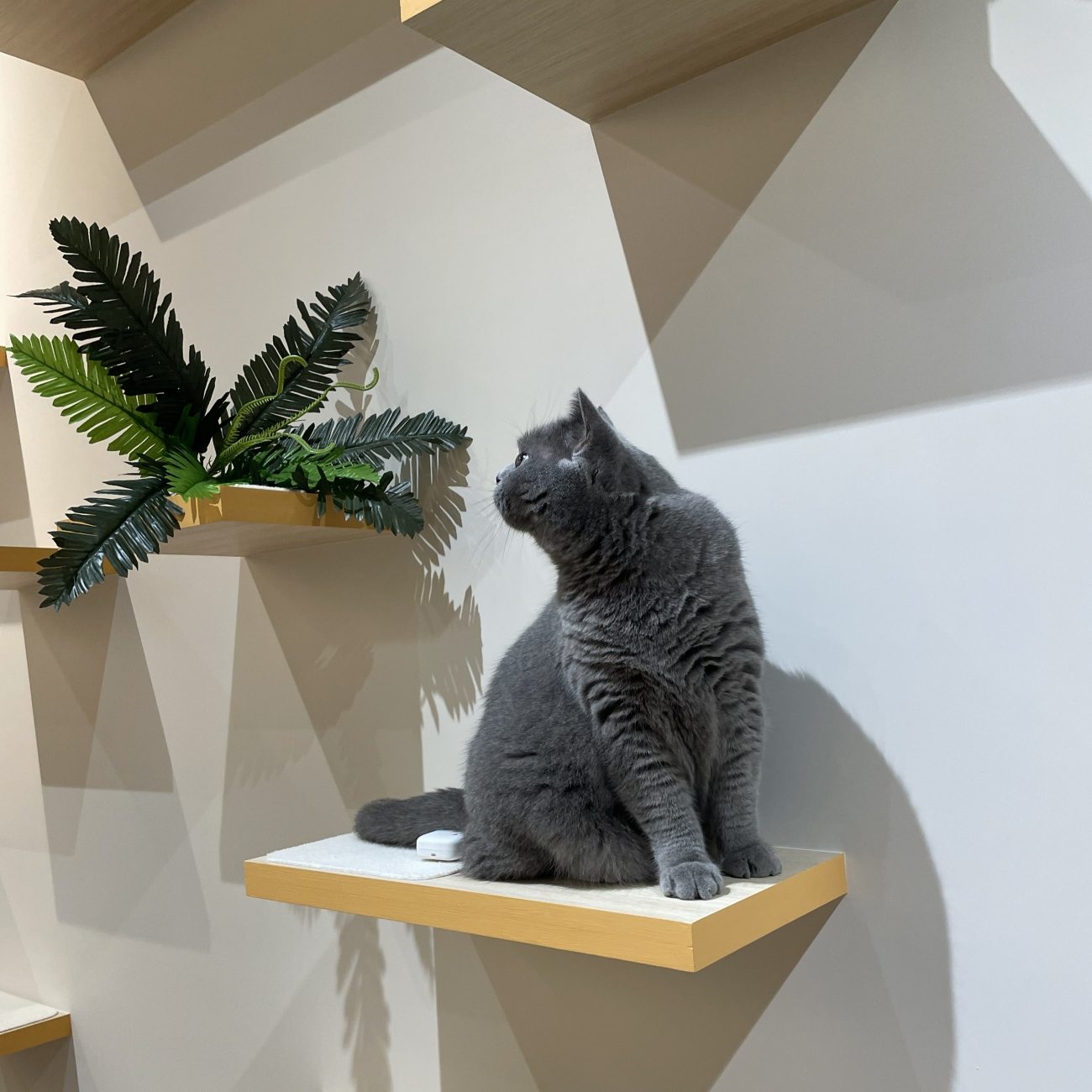 柔軟的床鋪、能跳躍俯瞰的層架,還有通往窗外的陽光空間,宛如家中溫馨的臥室,提供貓居民安靜又舒適的住宿體驗。