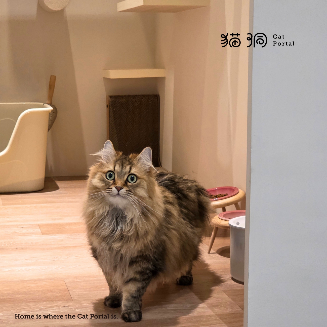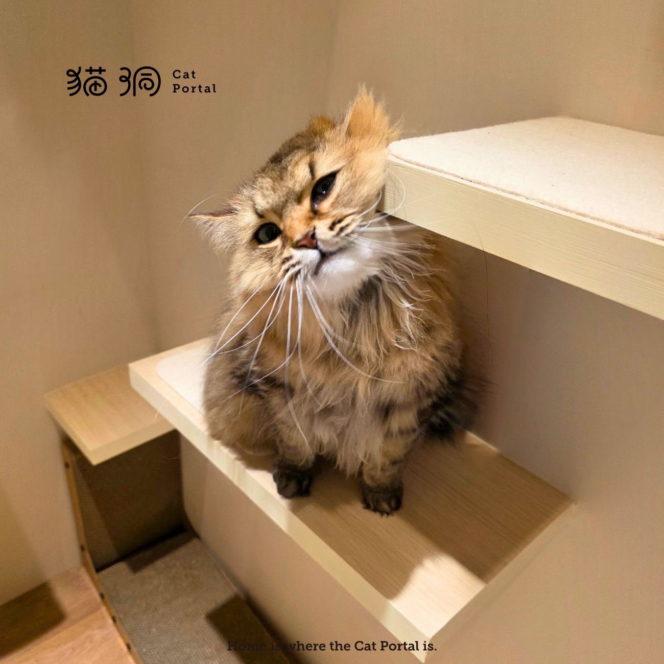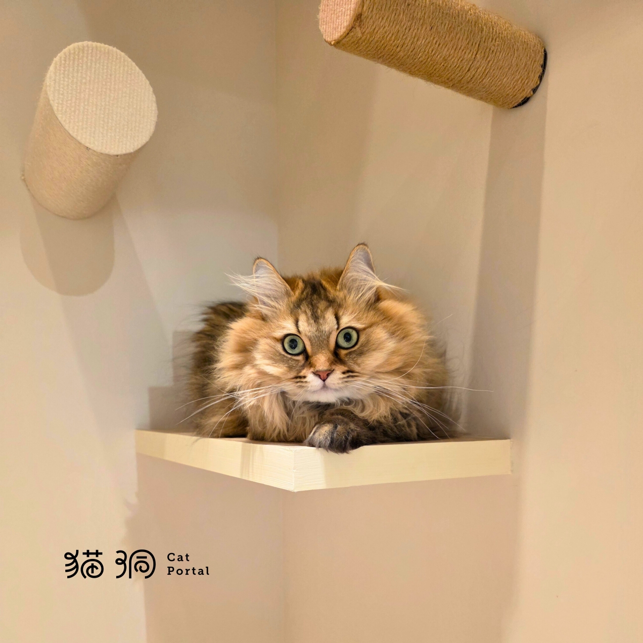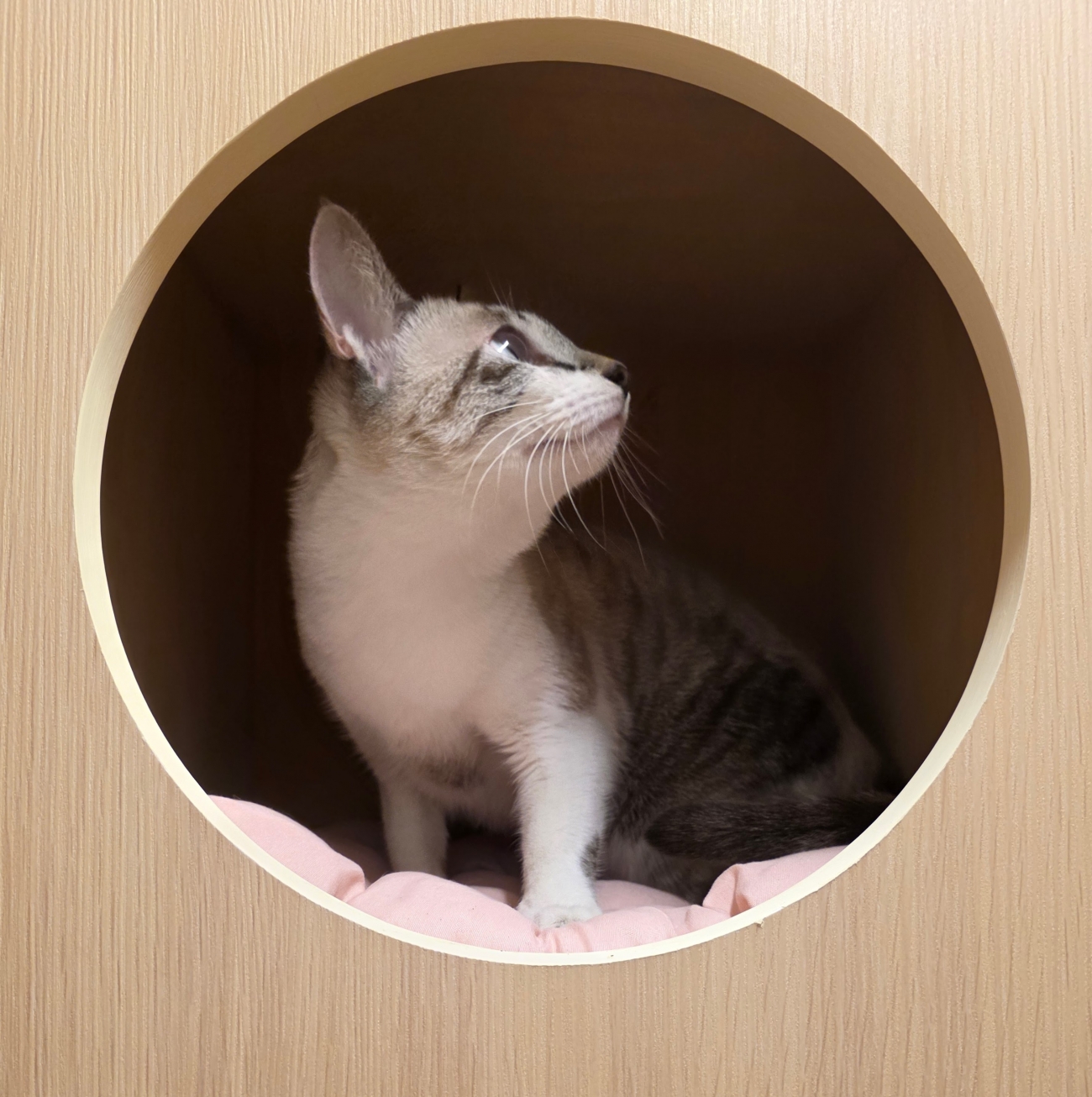 柔軟的床鋪、能跳躍俯瞰的層架,還有通往窗外的陽光空間,宛如家中溫馨的臥室,提供貓居民安靜又舒適的住宿體驗。