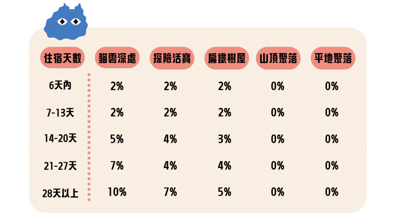- 各房型紅利金比例如下: